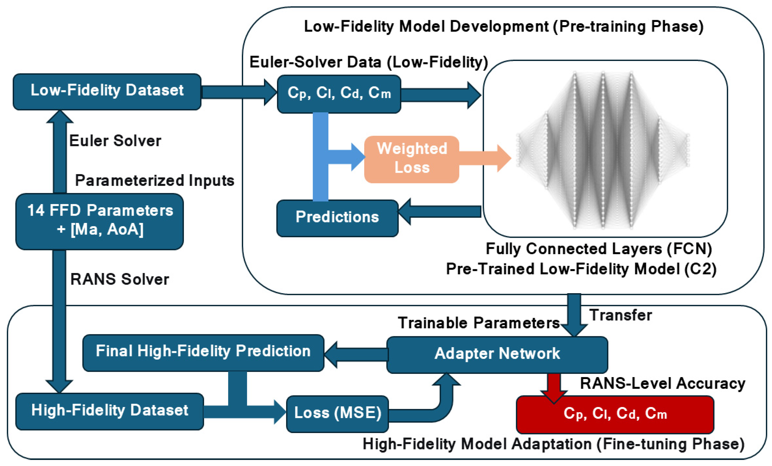 Table A3). This suggests that the model became overly specialized to Euler physics in the first step, making subsequent correction to RANS intractable.