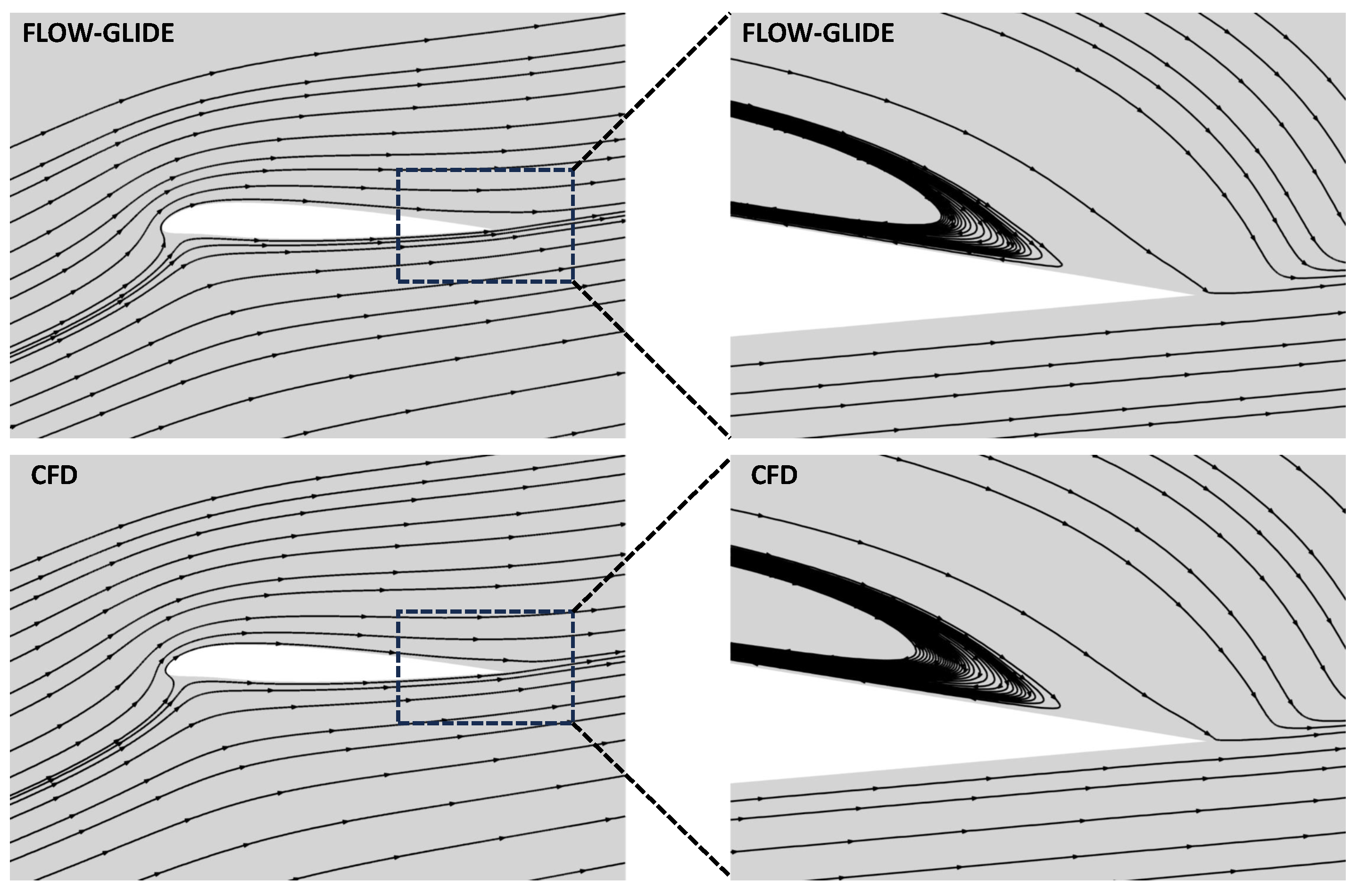 Figure 3. Flow field comparison between FLOW-GLIDE and CFD.