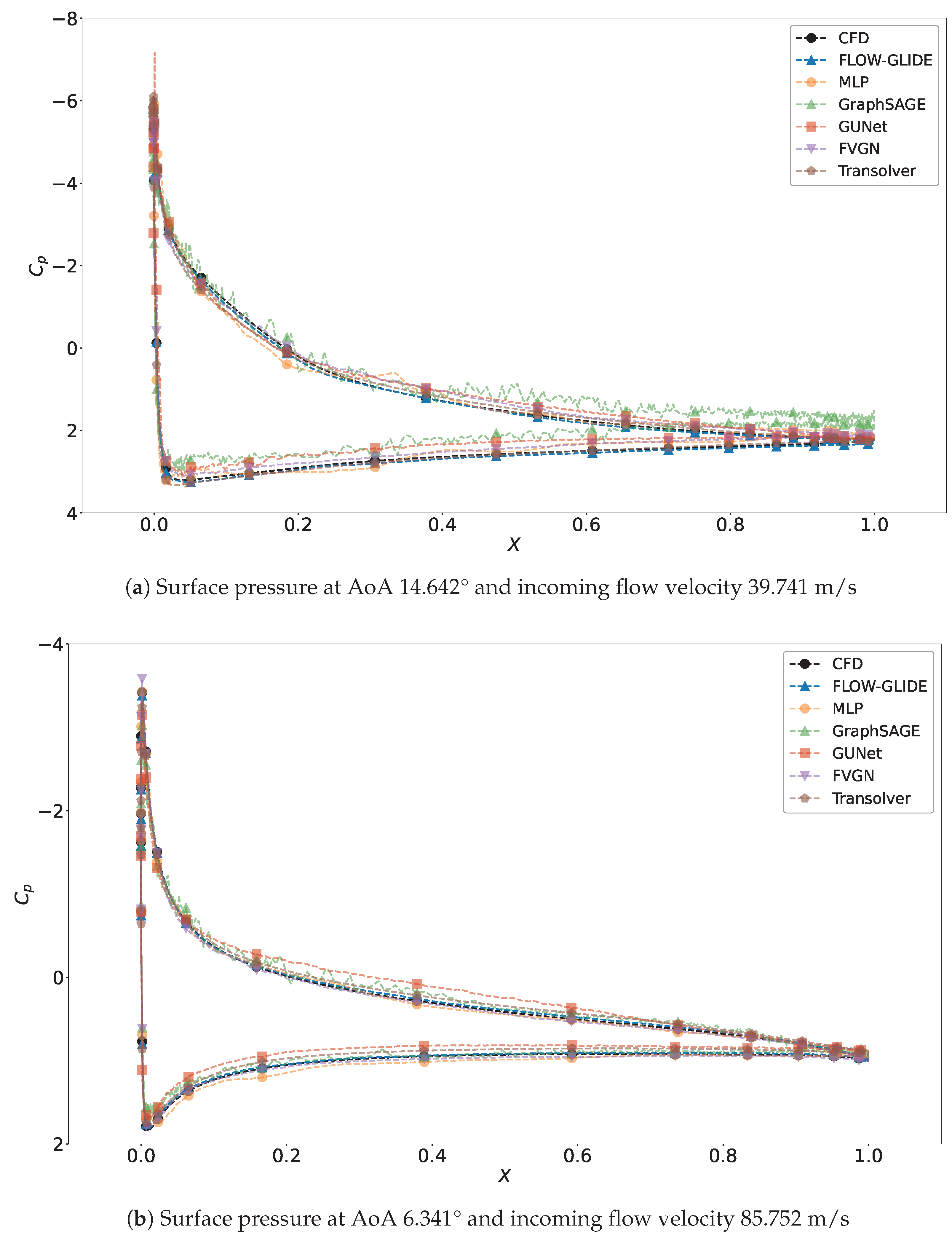 39. Bonnet, F.; Mazari, J.; Cinnella, P.; Gallinari, P. Airfrans: High fidelity computational fluid dynamics dataset for approximating reynolds-averaged navier–stokes solutions. Adv. Neural Inf. Process. Syst. 2022, 35, 23463–23478. [Google Scholar]