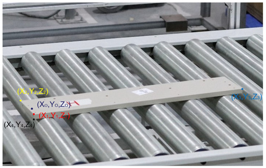 where points X 1 , Y 1 , Z 1 , X 2 , Y 2 , Z 2 , X 3 , Y 3 , Z 3 and X 4 , Y 4 , Z 4 represent the coordinates of the key points, while point ( X O , Y O , Z O ) denotes the coordinates of the center of the circular hole.