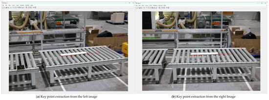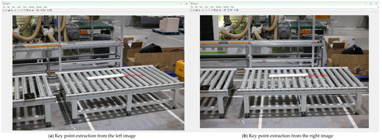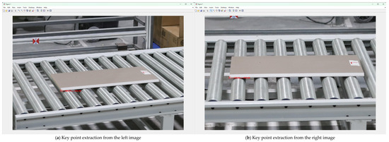 After selecting the left and right images of the panel to be measured, click “Left/Right Image Point Selection” to automatically extract key points from the left and right images (Figure 14). Taking the panel length A as an example, the system automatically extracts the planar two-dimensional coordinates of the key corner points.