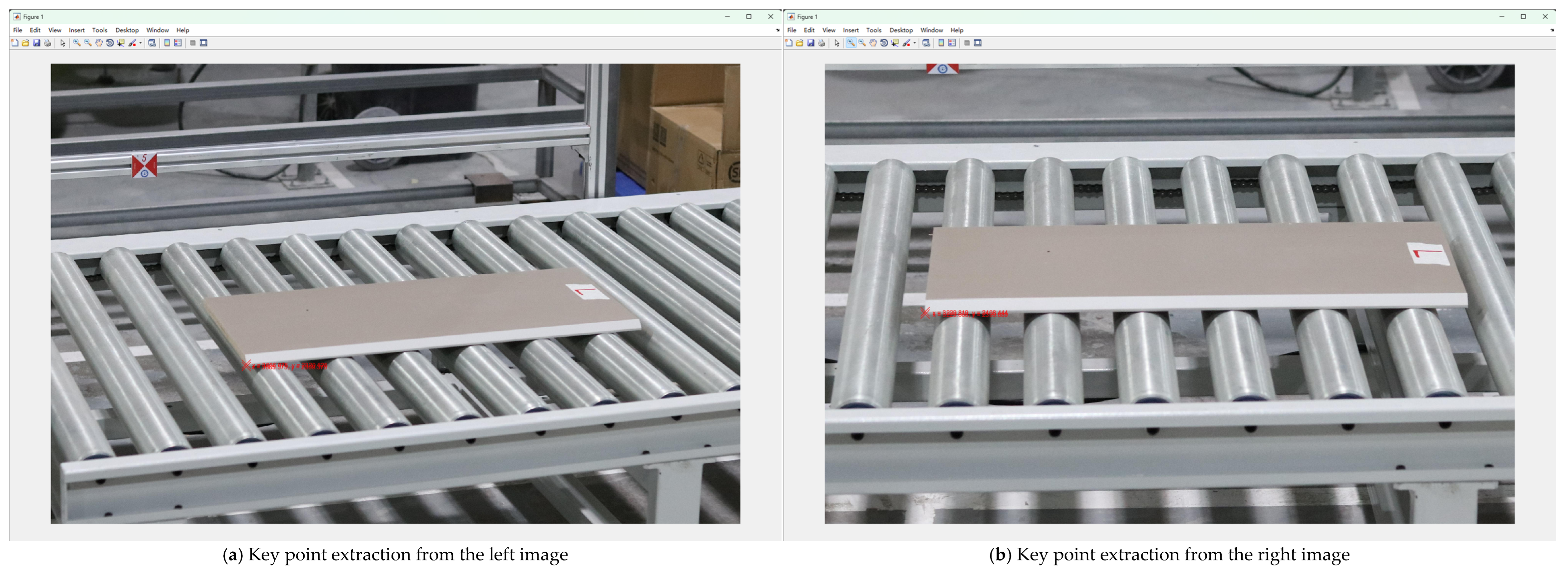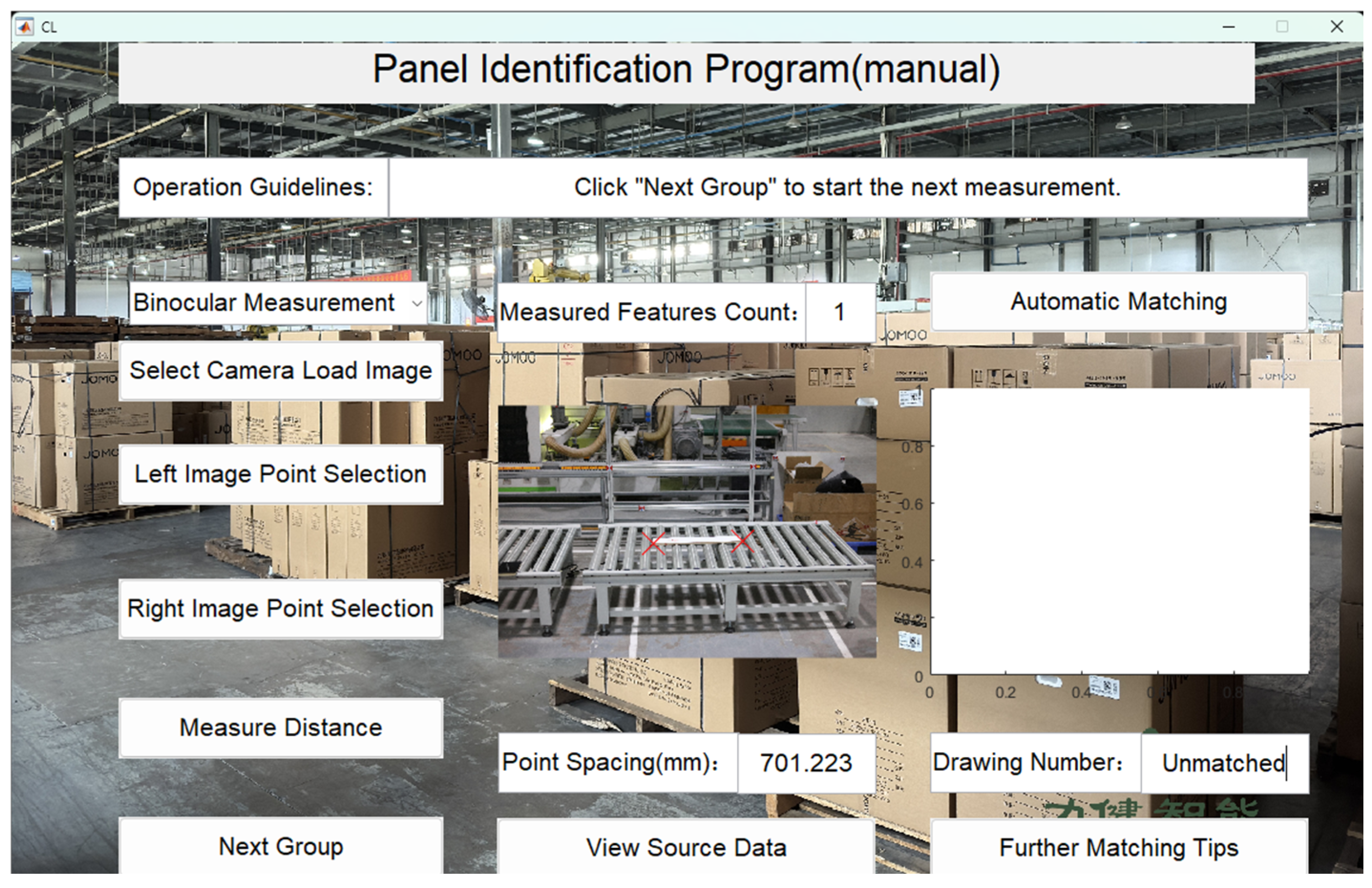 Some panels exhibit segmented edge thickness characteristics, with the front section maintaining a vertical height and the rear section transitioning in a wedge-shaped manner, which prevents a single measurement from accurately reflecting the true panel thickness. To address this, the system employs a multi-point thickness localization strategy, extracting key points at specific locations and calculating multiple thickness metrics δ 1 , δ 2 , etc., thereby avoiding errors from single-point measurements and ensuring accurate representation of complex panel geometries. After converting image coordinates to object-space coordinates, precise measurements of panel length, width, and multi-segment edge thickness are performed to construct a panel dimension feature vector, forming a reliable dimension ID.