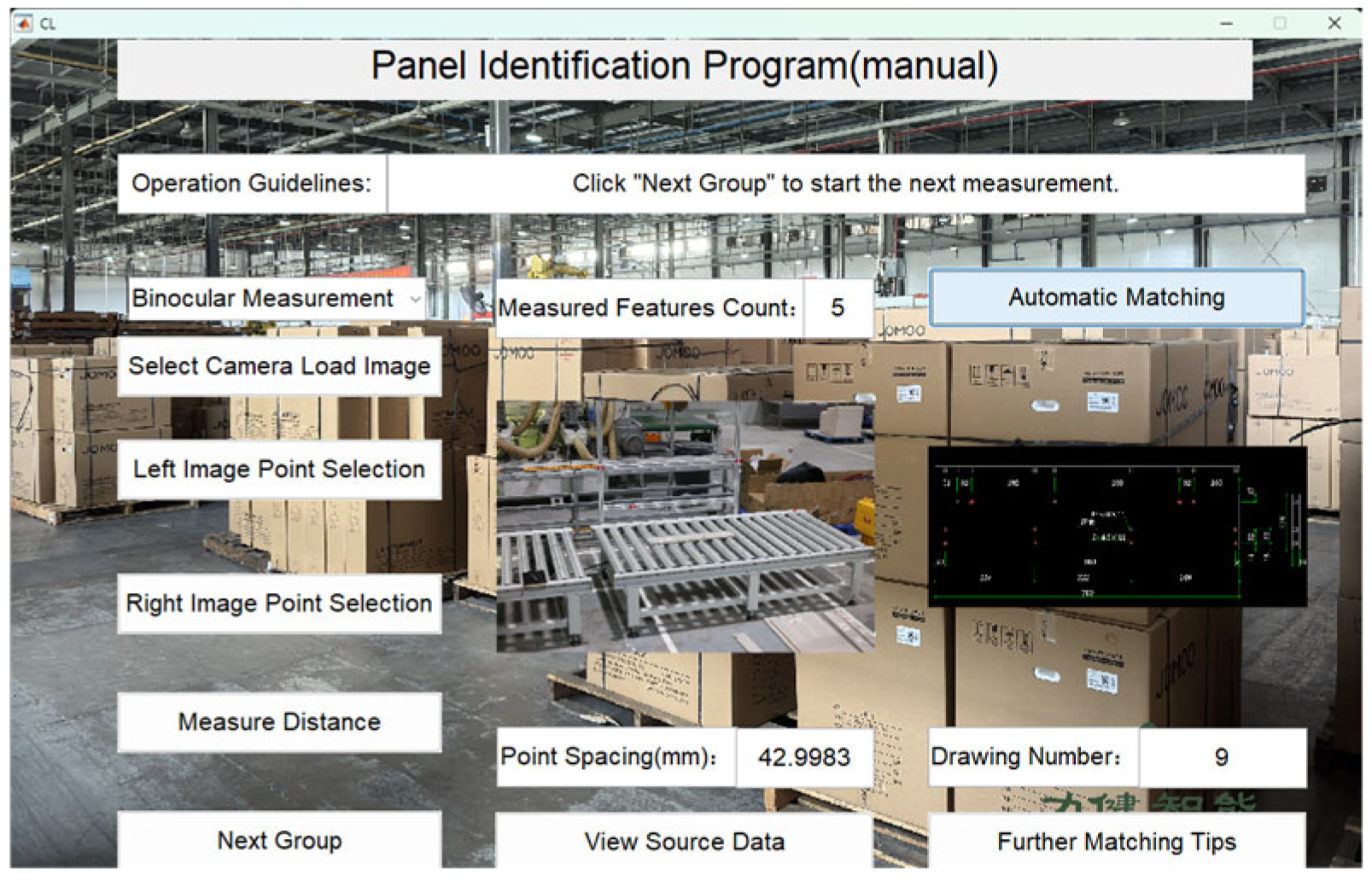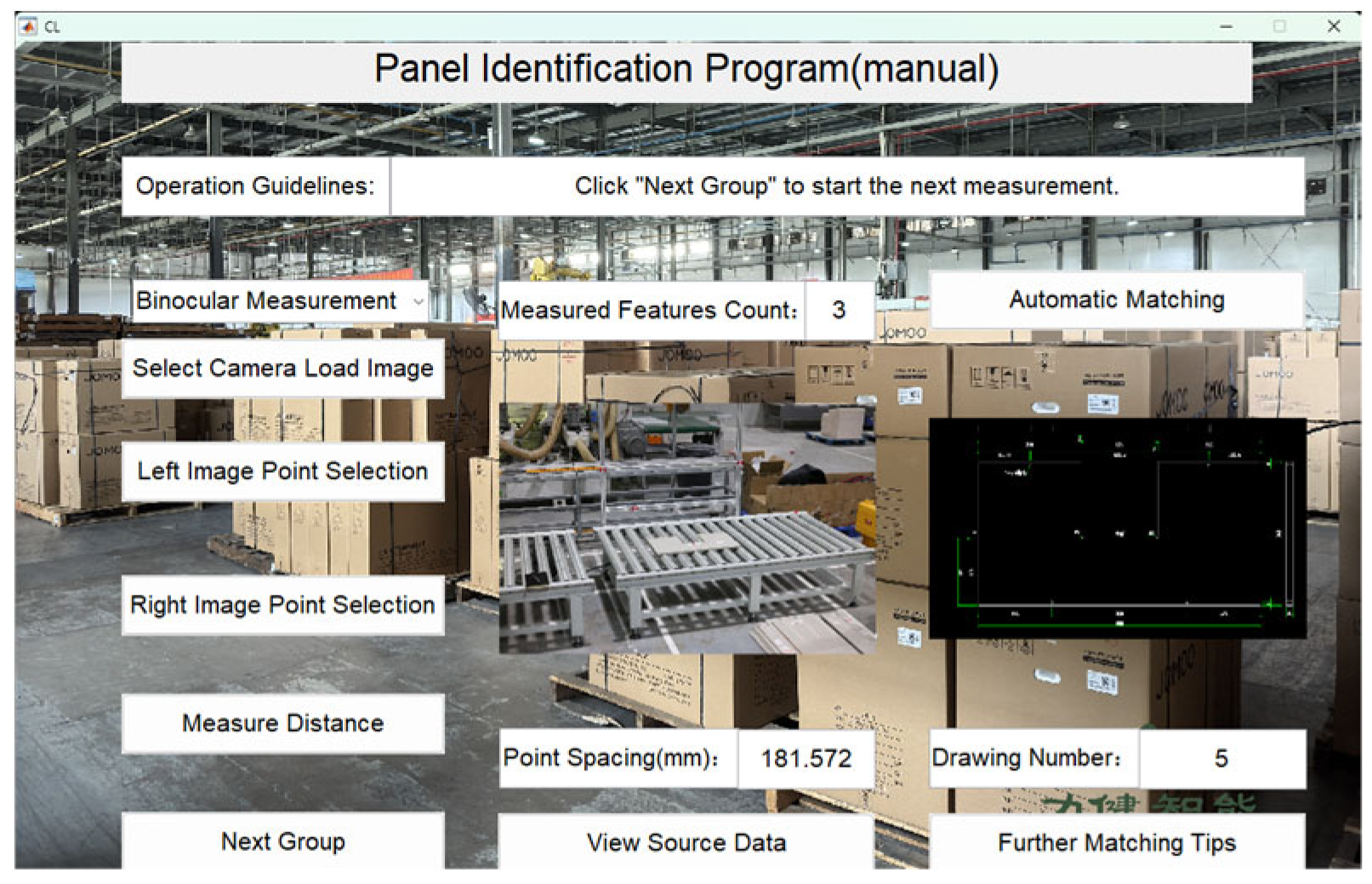 Existing photogrammetry technologies typically rely on complex calibration processes and require high stability and adaptability in dynamic production environments, which limits their widespread application [10]. Particularly in dynamic environments, factors such as vibration and lighting changes can affect the accuracy of photogrammetry, leading to significant measurement errors that, in turn, impact the precision of object localization and identification [11]. To address this, this paper proposes a label-free panel recognition method based on close-range photogrammetry, aiming to overcome the limitations of traditional technologies in dynamic environments. Compared to traditional computer vision and deep learning methods, the approach proposed in this paper does not require precise component alignment, simplifying the data preprocessing process and significantly enhancing the system’s processing efficiency and adaptability.