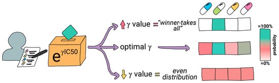 where is the IC50* for drug in patient , and is a tunable hyperparameter controlling the sharpness of the distribution. A high enforces a “winner-takes-all” dynamic, favoring the best-performing drug, while a low allows a more proportional distribution among several candidates (Figure 1).