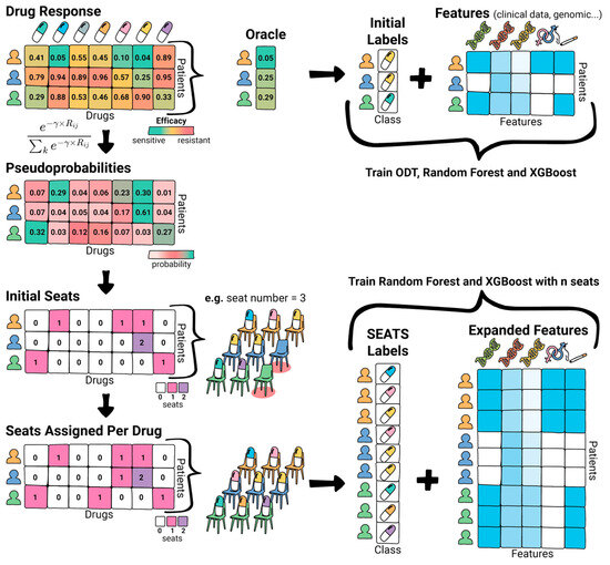 To better reflect the complexity inherent in biological systems, we developed SEATS (Systematic Efficacy Assignment with Treatment Seats), a label generation method inspired by voting systems. Rather than assigning a single optimal drug per patient, SEATS allocates a fixed number of “seats” across multiple drugs based on their relative efficacy, allowing the model to learn from a probabilistic label distribution.