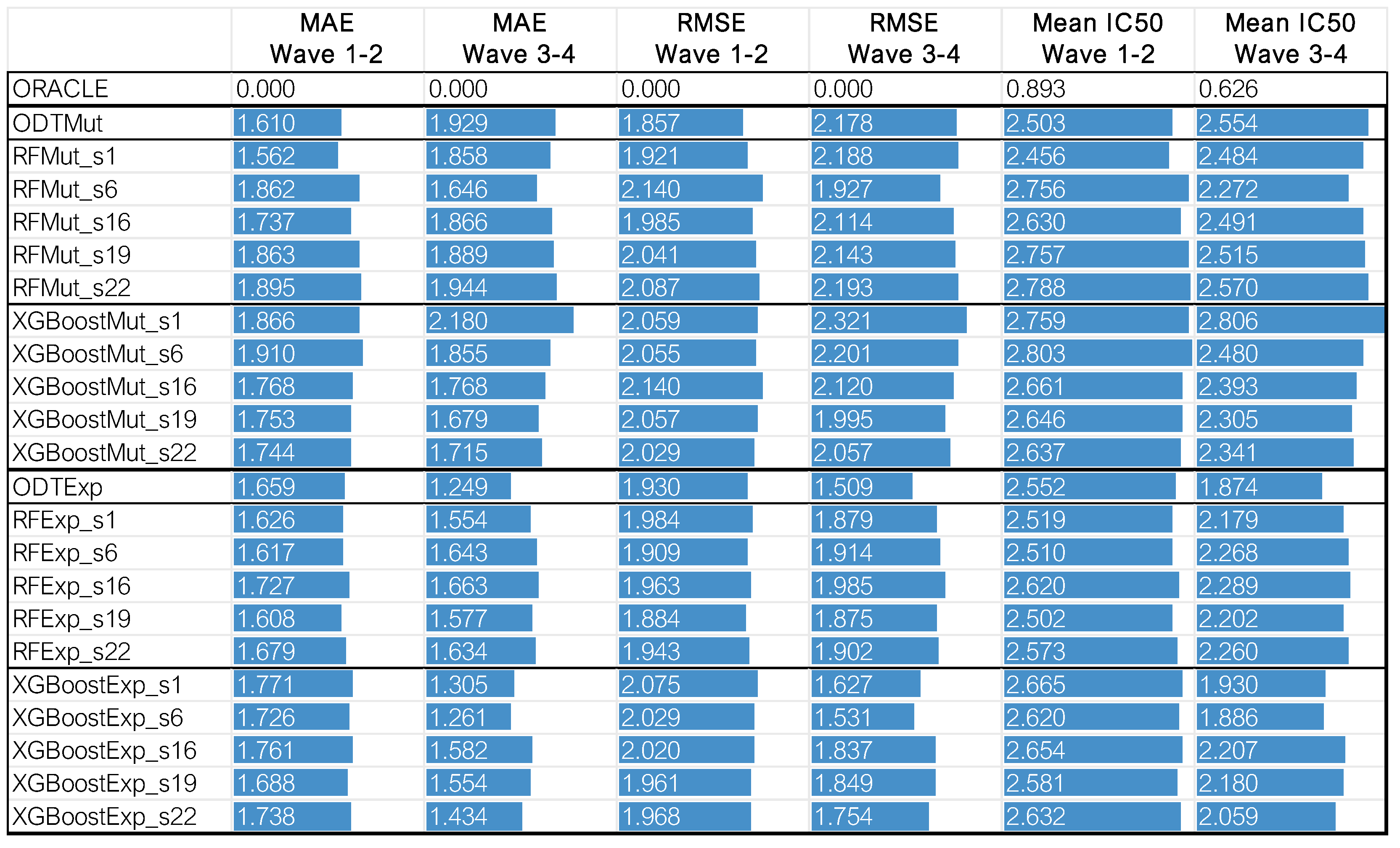 To assess multi-omics suitability, we examined the predictive performance of models trained separately with either gene expression or mutation data. This allowed us to evaluate the versatility of each algorithm in integrating different types of molecular information, which is critical for personalized treatment strategies.