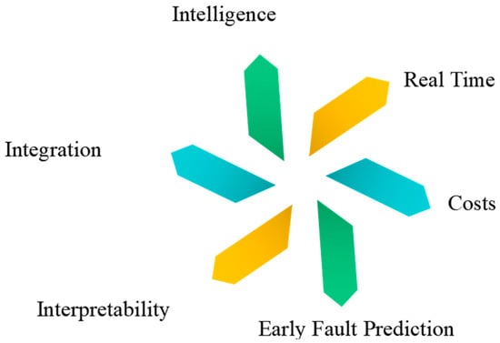 - Principle: for example, vibration analysis [9,10], acoustic analysis [11], current analysis, infrared thermography detection [12], electromagnetic detection, radiographic detection, vision detection, and intelligent detection.