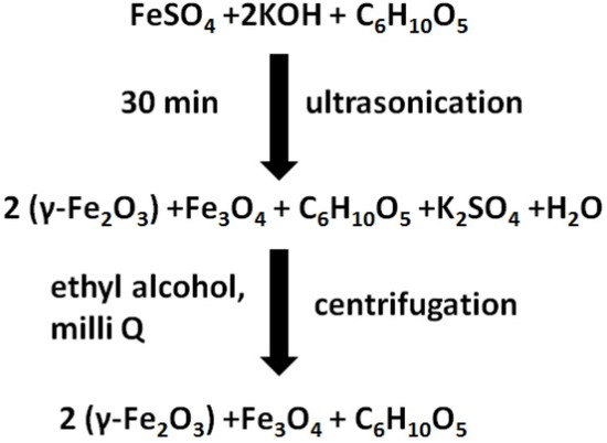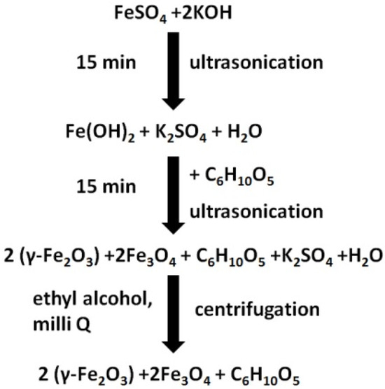 Sigmacell cellulose (type 20, 20 μm, Sigma Aldrich, Oakville, ON, Canada) Sigma–Aldrich, iron sulfate heptahydrate (FeSO4·7H2O: Sigma-Aldrich, 99% purity, Sigma Aldrich, Hamburg, Germany), kalium hydroxid pellets (Chemapol, 99% purity, Chemapol, Prague, Czech Republic), ethyl alcohol (Chimreactiv, Chemapol, Prague, Czech Republic), and Milli-Q ultrapure distilled water (our laboratory) were used without further purification.