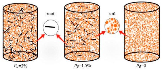 The experiment employed the root systems of Cynodon dactylon, using grass roots with a diameter of 0.5–1 mm and maintaining the length of the grass roots between 8 mm and 10 mm. To quantify the number of roots added to the soil, we introduced the concept of root mass density.