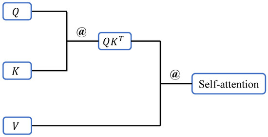 In the self-attention mechanism, the input data, after preprocessing, is transformed into three matrices of identical size, which form the core of the self-attention mechanism. These matrices—commonly referred to as the Query (Q), Key (K), and Value (V) matrices—encapsulate the essential features of the input data. The results obtained from matrix multiplication and normalization represent the relationships between individual data elements, enabling the network to identify which parts of the input data are most important for the current task. The matrix computation process is illustrated in Figure 1. Specifically, the Q matrix is multiplied by the K matrix to produce an intermediate matrix, which represents the association scores between units of input data. These scores, after normalization, are transformed into a probability matrix, where higher probabilities indicate a greater likelihood of selecting important information as features. This probability matrix is then applied in a matrix multiplication with the V matrix to generate the self-attention matrix, which encodes the relationships among features. This process strengthens the network’s ability to capture long-range dependencies and contextual relevance, effectively mitigating the issue of the network forgetting initial features.