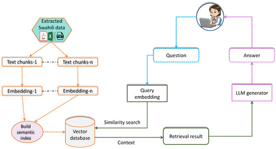 By integrating automation with linguistic considerations and structured processes, the workflow depicted in Figure 4 addresses the limitations of Swahili’s limited annotated datasets. This pipeline enables the Retrieval-Augmented Generation framework to ground its responses in a large, dynamically updated, and well-organized knowledge database, ensuring that the system delivers accurate and coherent results supported by real-world data.