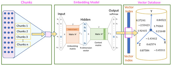 The vector representation of each text chunk in the embedding process, as shown in Figure 5, is mathematically defined as