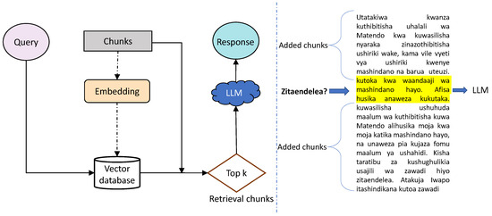 Retrieval-Augmented Generation (RAG) is an innovative approach in NLP that combines the strengths of retrieval systems and large language models (LLMs). Unlike traditional language models that rely solely on pre-existing training data, RAG includes a retrieval component to dynamically fetch relevant information from external knowledge bases or databases. This additional step allows the model to provide responses that are more accurate, contextually relevant, and detailed [14]. RAG works by first identifying the most relevant information related to a user’s query from an external source. This retrieved information is then incorporated into the language model, which uses it to generate a response. For example, if a user asks a question about Swahili culture, the retrieval system can find relevant content in a Swahili knowledge repository. The language model can then use this content to craft a well-informed response [15,16]. This approach is particularly useful for low-resource languages like Swahili, where training data alone may not cover all possible queries or topics. By leveraging external knowledge, RAG can overcome the limitations of small datasets and enhance the performance of conversational systems.