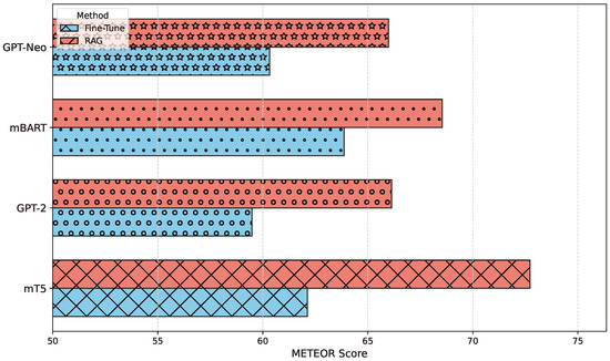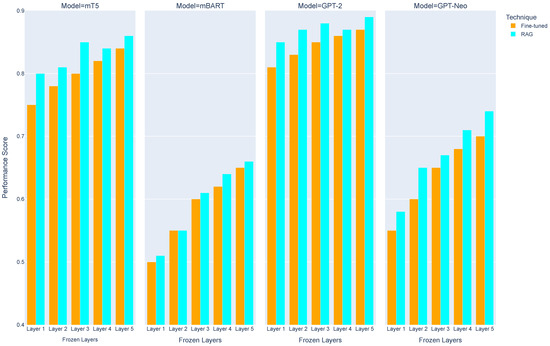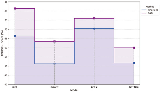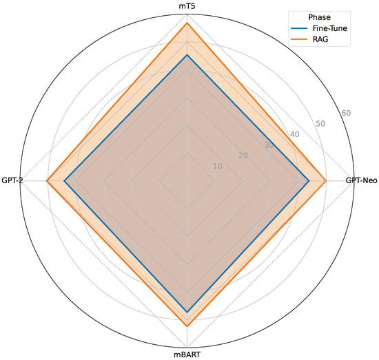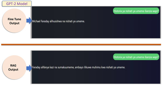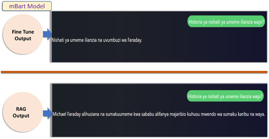 The GPT-2 model was evaluated on its ability to generate responses for Swahili questions under both Fine-Tune and Retrieval-Augmented Generation (RAG) conditions. Table 14 presents a Swahili question and its English translation, alongside the responses generated under both methods. While the RAG approach improved the quality of responses compared to Fine-Tune, the overall performance of GPT-2 was less comprehensive than that of the mT5 and mBart models. For instance, the Fine-Tune response for GPT-2 only briefly associates Michael Faraday with electricity energy, while the RAG response provides slightly more context by mentioning Faraday’s work with electromagnetism. However, the depth and specificity of the answers still fall short of the detailed explanations generated by mT5 and mBart under the RAG framework. Figure 21 further illustrates this comparison, showing that while RAG enhances GPT-2’s ability to retrieve external information, its outputs remain relatively less detailed and contextually enriched compared to the other models. These findings indicate that while RAG improves GPT-2’s performance, its capabilities in handling complex Swahili queries are more limited, highlighting the superiority of mT5 and mBart for tasks requiring detailed and nuanced responses.