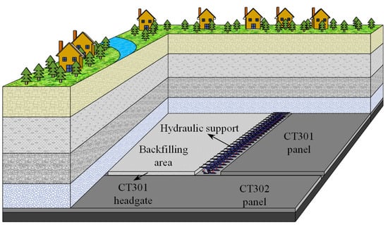 - Wang, F.T.; Ma, Q.; Li, G.; Wu, C.G.; Guo, G.L. Overlying Strata Movement Laws Induced by Longwall Mining of Deep Buried Coal Seam with Superhigh-Water Material Backfilling Technology. Adv. Civ. Eng. 2018, 2018, 10. [Google Scholar] [CrossRef]