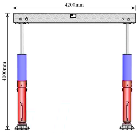 During the curing process of the paste backfill, its mechanical properties gradually improve. Initially, the fill’s strength and stability are relatively weak, and its bearing capacity is low, posing risks to the stability of roadway structure. Unlike hydraulic supports used in mining faces, the support equipment in GER should not obstruct the transportation function of the retained roadway. Therefore, portal hydraulic supports (as shown in Figure 16) are used to strengthen the support within roadway, compensating for the initial weakness of the material’s strength. At the same time, these supports provide higher active support forces, controlling roof subsidence and ensuring a safe, spacious working environment. This overall improves the stability and safety of roadway structure.