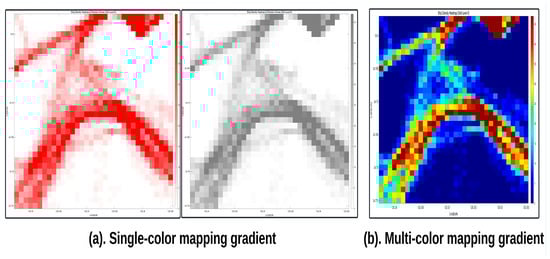 Colormap mapping method. (a) Single-color gradient mapping method for maritime traffic density maps. (b) Multi-color gradient mapping method for maritime traffic density maps.