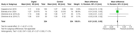 APA StyleVieira, F. L., Carnietto, M., Cerqueira Filho, J. R. A., Bordini, E. A. F., Oliveira, H. F. F., Pegoraro, T. A., & Santiago Junior, J. F. (2025). Intraoral Scanning Versus Conventional Methods for Obtaining Full-Arch Implant-Supported Prostheses: A Systematic Review with Meta-Analysis. Applied Sciences, 15(2), 533. https://doi.org/10.3390/app15020533