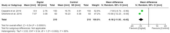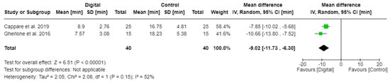 - The clinical time required to perform procedures was significantly shorter when using the intraoral scanning method compared to the conventional technique, both at the implant and patient levels. However, the number of repeated procedures was lower with the traditional impression method. It is important to note that only a limited number of studies were included in this analysis.