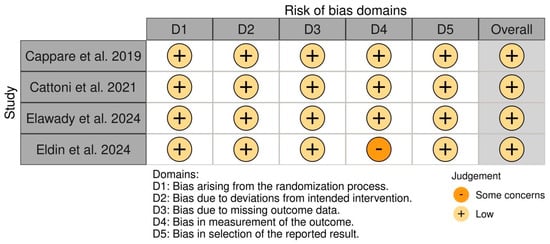 - Sterne, J.A.C.; Savović, J.; Page, M.J.; Elbers, R.G.; Blencowe, N.S.; Boutron, I.; Cates, C.J.; Cheng, H.Y.; Corbett, M.S.; Eldridge, S.M.; et al. RoB 2: A revised tool for assessing risk of bias in randomised trials. BMJ 2019, 366, l4898. [Google Scholar] [CrossRef]