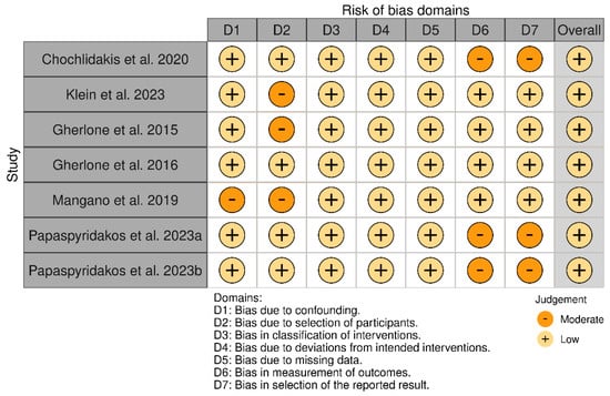 - Sterne, J.A.C.; Hernán, M.A.; Reeves, B.C.; Savović, J.; Berkman, N.D.; Viswanathan, M.; Henry, D.; Altman, D.G.; Ansari, M.T.; Boutron, I.; et al. ROBINS-I: A tool for assessing risk of bias in non-randomised studies of interventions. BMJ 2016, 355, i4919. [Google Scholar] [CrossRef] [PubMed]