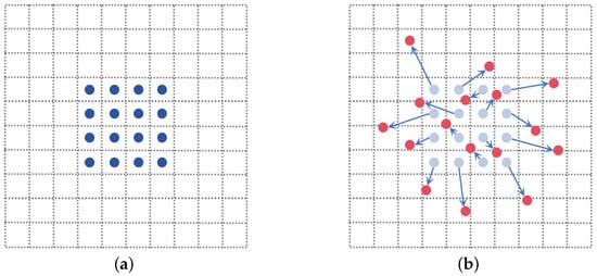 Illustration of traditional and deformable convolution. (a) traditional convolution; (b) deformable convolution.