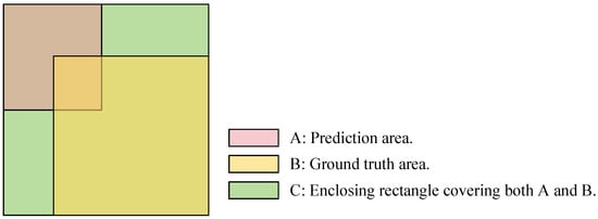 where A represents the prediction, B denotes the ground truth, and C signifies the smallest rectangular that surrounds A and B, as visualized in Figure 6.
