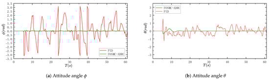 In today’s rapidly developing field of aviation technology, unmanned aerial vehicles (UAVs) have become a hot spot for research and application because of their unique design and operational flexibility. These vehicles have shown great potential for surveillance, reconnaissance, cargo transportation, and aerial photography []. Many controllers have been applied to the attitude stabilization of UAVs, such as the proportional–integral–derivative (PID) control strategy [,], optimal linear quadratic regulator (LQR) control algorithm [], and control algorithm []. However, when performing some specific tasks, such as agricultural spraying pesticides and forest area inspections, UAVs need to hover accurately and have certain anti-interference capabilities, so their control problems are still full of challenges, especially their nonlinear dynamic characteristics, parameter uncertainty, and external environmental disturbance, which put forward higher requirements for its flight stability and control accuracy.