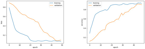 Figure 8, it is evident that the ensemble model’s training and validation losses, as well as accuracy rates on DataSet2, change significantly over time. The training loss drops rapidly within the first 10 epochs and stabilizes, while the validation loss decreases more slowly and shows some fluctuations after the 20th epoch, indicating an improvement in the model’s generalization ability. The training accuracy steadily increases, while the validation accuracy rises more gradually and starts to converge after the 40th epoch. These trends suggest that the model is learning effectively without signs of overfitting. Furthermore, through the use of majority voting in the ensemble learning process, a performance improvement of 2.17% was achieved for DataSet1 and 1.23% for DataSet2.