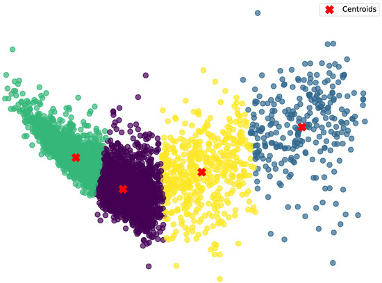 Input: : set of latent features extracted from the training data Z : set of clusters C : number of allowed maximum iterations Steps: 1: Assign initial centers randomly 2: repeat 3: 4: for each do 5: 6: 7: end for 8: for do 9: if then 10: 11: end if 12: end for 13: until the cluster centers do not change or is reached |