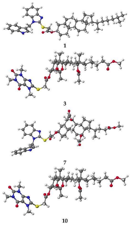 PM5 semiempirical calculations were performed using the WinMopac 2003 program. The molecular models of representative conjugates are shown in Figure 1. The final heats of formation (HOF) for bioconjugates 1–10 are presented in Table 2.