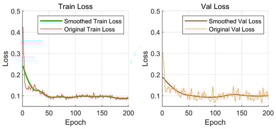 The Transformer-GRU model was trained with the above conditions. The trend of training and validation loss is shown in Figure 5. Since focal_loss dynamically adjusted the weight of hard-to-classify samples, validation loss fluctuated slightly, but both training loss and validation loss converged and the gap was small. The model was well trained and had high accuracy in testing.