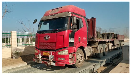 Overloading is a key issue and difficult point in the management of highway freight vehicles, while the traditional truck scale requires vehicles to wait in line, stop, and weigh, which often leads to congestion at the toll stations [,]. With the increasing demand for highway freight transportation in China, weigh-in-motion (WIM) technology, which enables accurate weight measurement while vehicles are in motion, is becoming increasingly important and has been developed rapidly. This technology holds notable research significance and engineering application value.