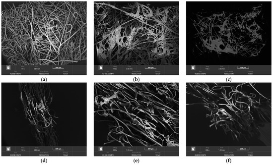 As for dissolved oxygen, values between 3 and 4 mg/L were found for both samples (Figure 7e,f). Values between 3 and 4 mg/L are generally considered sufficient for most biological treatment operations, ensuring that the microorganisms have the necessary oxygen to maintain their metabolic activities, since these were aerobic microorganisms [36,37].