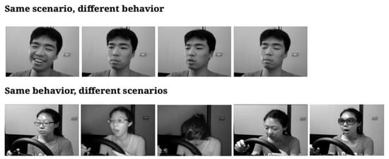 NTHU-DDD is used, which contains 9.5 h of footage from 36 diverse individuals participating in a driving simulation as shown in Figure 1 [12]. The dataset shows five distinct scenarios: three during daylight (barefaced, with sunglasses, and with glasses), and two at night (bare-faced and with glasses). This footage, captured using an IR camera in AVI format with a resolution of 640 × 480 pixels, showcases various driver behaviors, such as yawning, nodding, and laughing. The training dataset was organized into 18 folders, each representing the five scenarios, and further categorized by four driver conditions. Annotations for drowsiness, head movement, and mouth and eye conditions are provided. Additionally, an evaluation dataset and function compatible with MATLAB R.2024A and C++ are provided to assess drowsiness detection accuracy. Before any analysis, individual video frames were extracted and annotated using the provided text files.