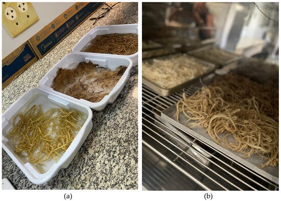 Fiber treatment: (a) stabilization with distilled water; (b) moisture removal.