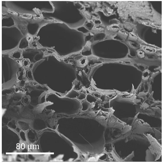 SEM Image of the wood structure. SEM image displaying the aligned microchannels in the beech wood sample with an average channel diameter of approximately 50 μm. This microstructure facilitates efficient water evaporation and ion transport, essential for the device’s performance.