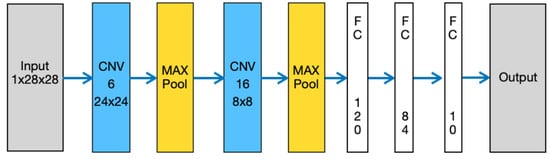 - LeCun, Y.; Bottou, L.; Bengio, Y.; Haffner, P. Gradient-based Learning Applied to Document Recognition. Proc. IEEE 1998, 86, 2278–2324. [Google Scholar] [CrossRef]