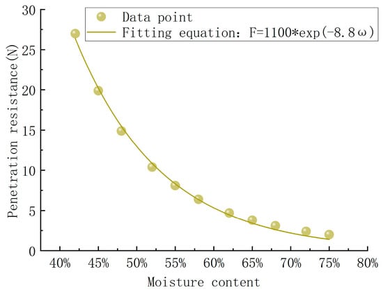Fitting curves of different water content and penetration resistance.