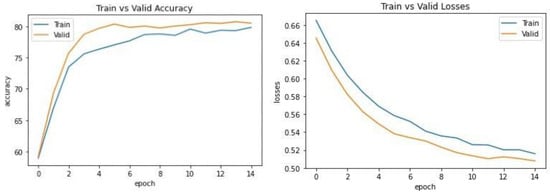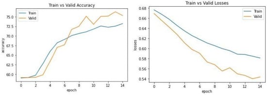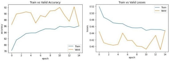 Figure 10, Figure 11 and Figure 12 depict the learning curves for CNN models trained with various hyperparameters, illustrating the accuracy and loss trends over the course of the epochs. The plots reflect the results across 15 epochs. The Adam optimizer was consistently applied across all three models. ResNet-50 and Inception V3 were trained with a learning rate of 0.00001 and a batch size of 32, whereas VGG-16 was trained using a batch size of 16 and a learning rate of 0.0001. These hyperparameters were selected based on several experimental trials conducted on the models.