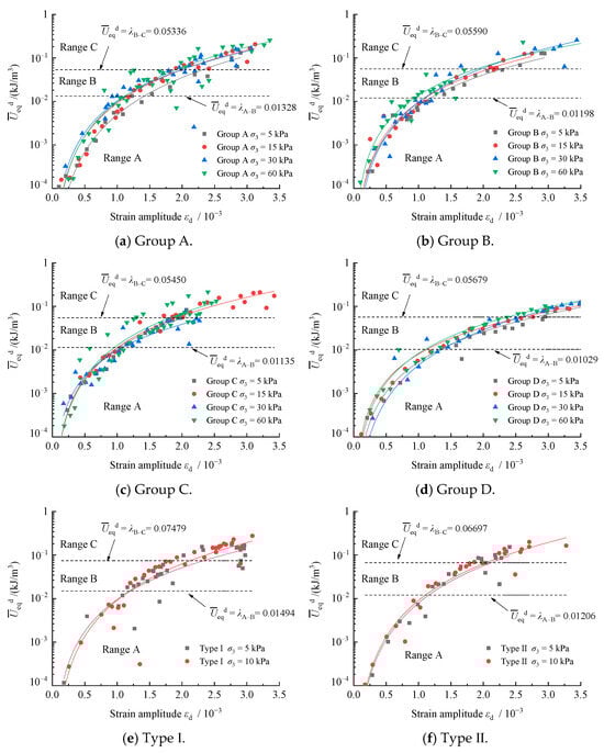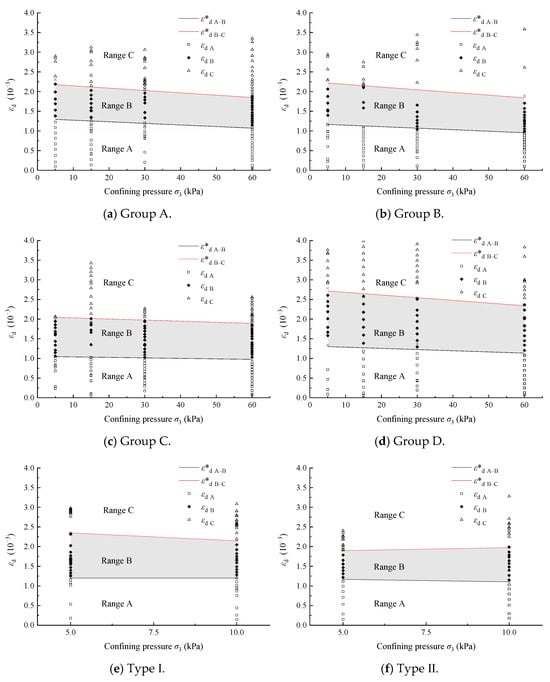 Similarly, the threshold curves for dynamic strain amplitude ε*d A–B and ε*d B–C were analyzed, as shown in Figure 14.