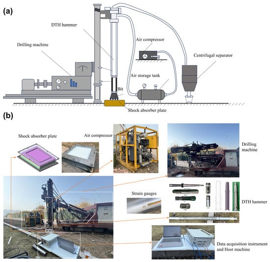 Drill system for testing the impact performance of the RC-DTH air hammers. (a) Schematic diagram; (b) field test.