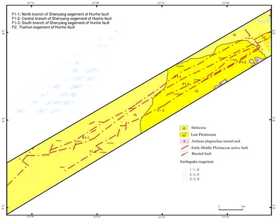 Detailed structure and seismic tectonic map of the Hunhe fault in the Shenyang segment.