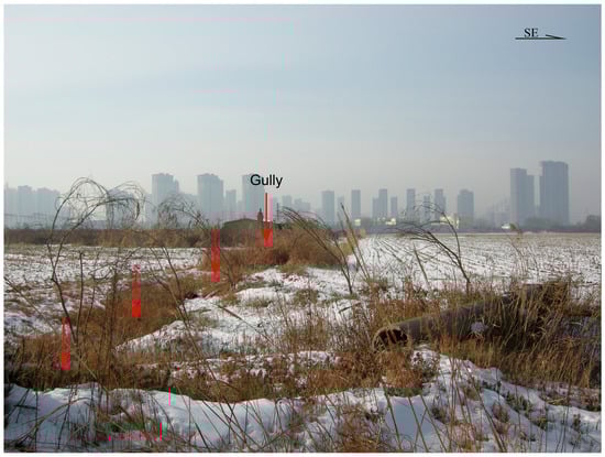 Small gullies related to faults on the Hunhe gentle alluvial plain (photo courtesy of Bo Wan).
