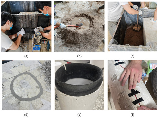 - Use polyethylene foam blocks as molds, pour the prepared lining similar materials into the molds, dismold and maintain the tunnel models after the strength of gypsum is stabilized, paste strain gauges and miniature earth pressure boxes at the monitoring section, and install monitoring cameras inside the tunnel model.