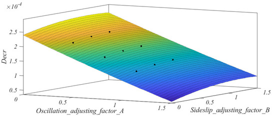 From Equation (9), it can be seen that when changes very little, is more sensitive about the response of , and in the process of sideslip, the relationship between the three changes is nonlinear; at this time, it can be based on this nonlinear feature to determine whether sideslip occurs.