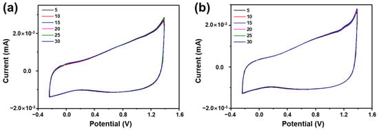 Cyclic voltammetry stability of (a) BAPCP and (b) HAPCP (scan rate: 100 mV/s).