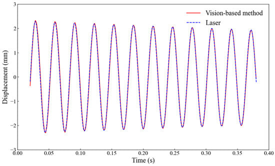 The comparison of displacement responses obtained from the vision-based system and laser vibrometer.