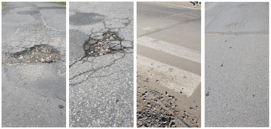 Examples of damaged road pavement.