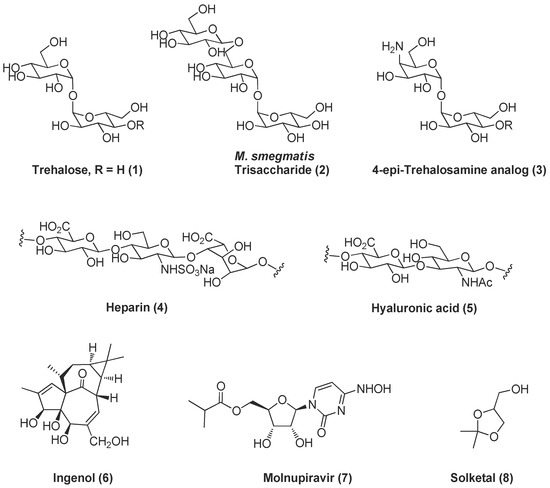 - Xavier, N.M.; Andreana, P.R.; Carvalho, I.; von Itzstein, M. Editorial: Carbohydrate-Based Molecules in Medicinal Chemistry. Front. Chem. 2021, 9, 655200. [Google Scholar] [CrossRef]